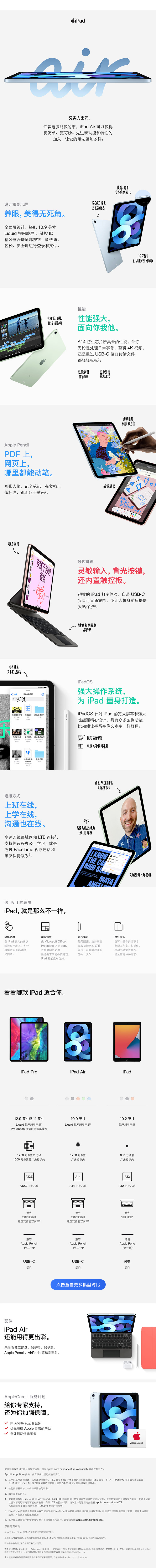 商品名称:Apple iPad Air 10.9英寸 平板电脑( 2020年新款 256G WLAN版/A14芯片/触控ID/全面屏MYFY2CH/A)天蓝色
