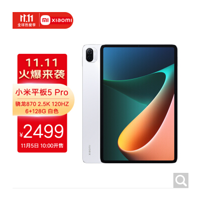 小米平板5 Pro 2021款11英寸2.5K高清屏 120Hz 骁龙870 67W快充 杜比影音娱乐办公平板电脑6G+128GB 白色